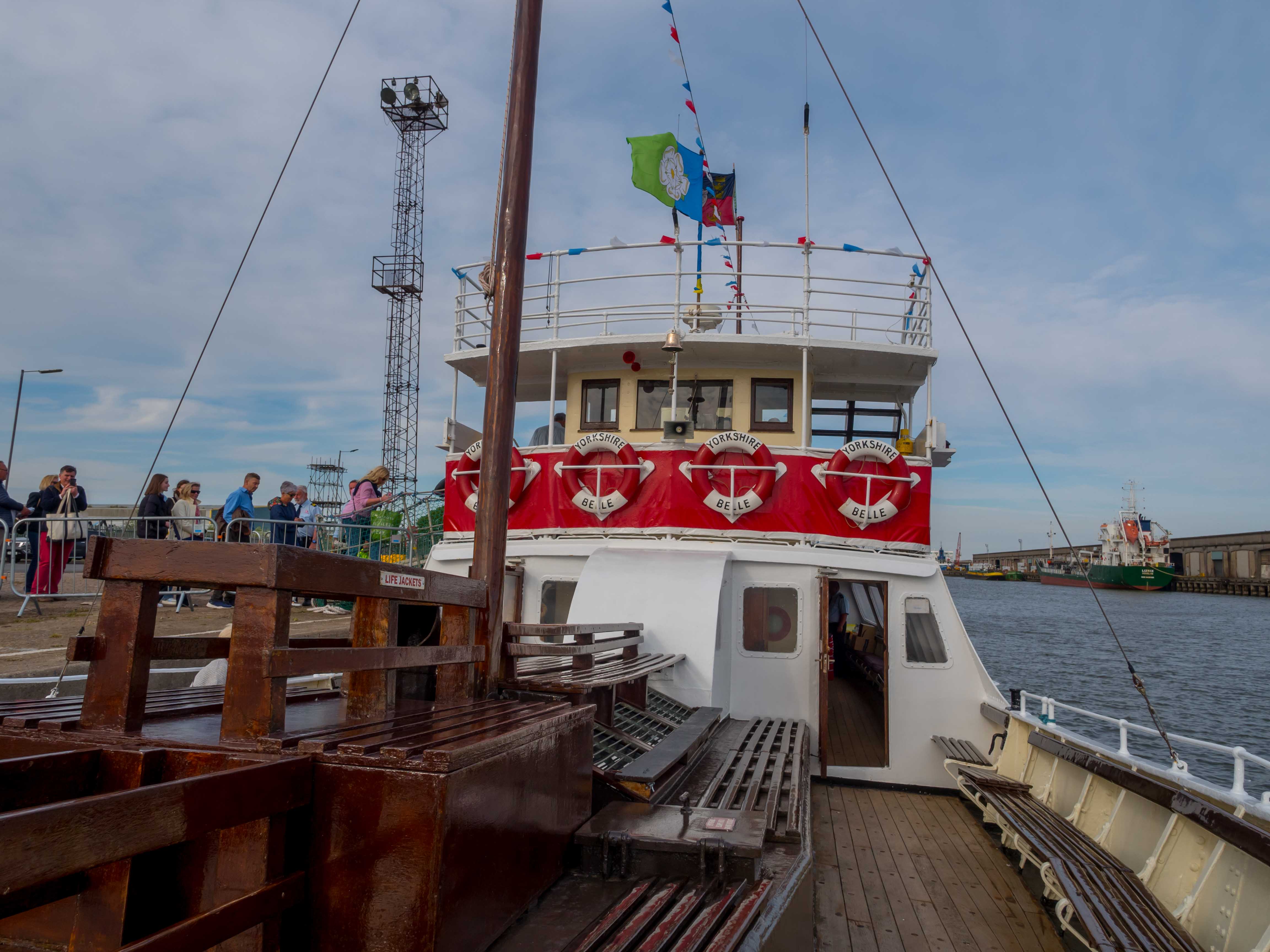 At 17:50 on June 2nd 100 passengers boarded Bridlington’s famous Pleasure Cruiser – the just turned 75 year old Yorkshire Belle – on Albert Dock to join the flotilla sailing to the Humber Bridge before the lighting of Hessle Town Council’s beacon to mark the Platinum Jubilee.