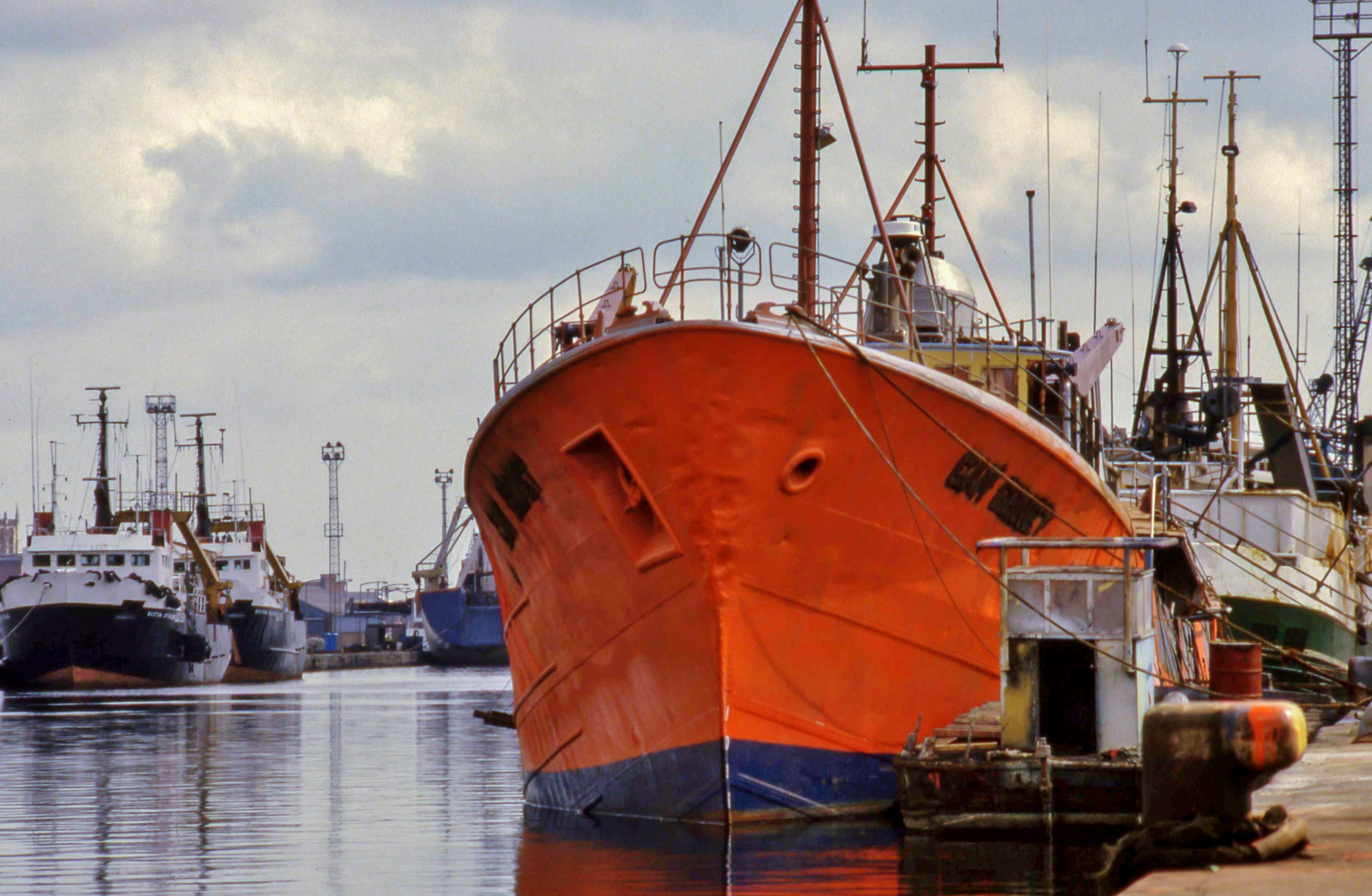 - William Wright Dock, Kingston upon Hull, Sunday, 1 July, 1984. ‘Swanella’, Marr-owned stern trawler moored at north side of the dock.