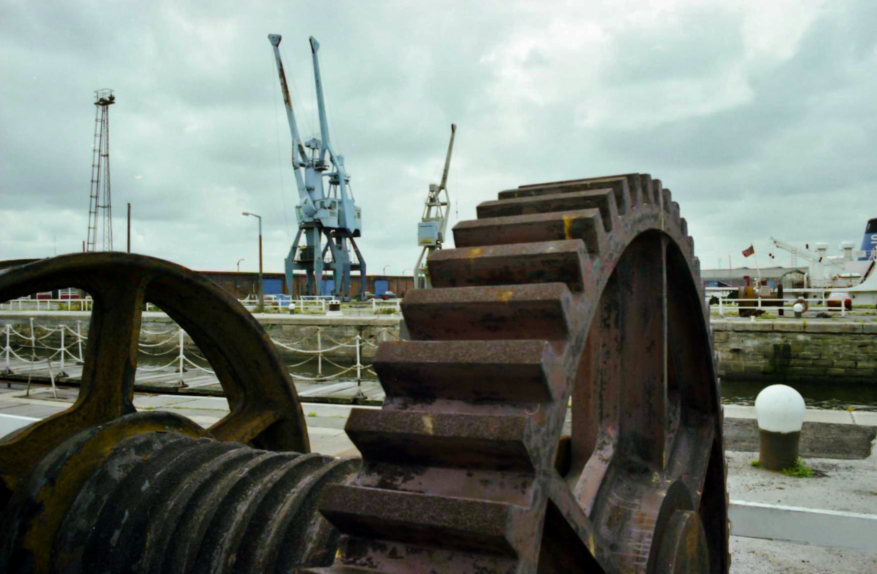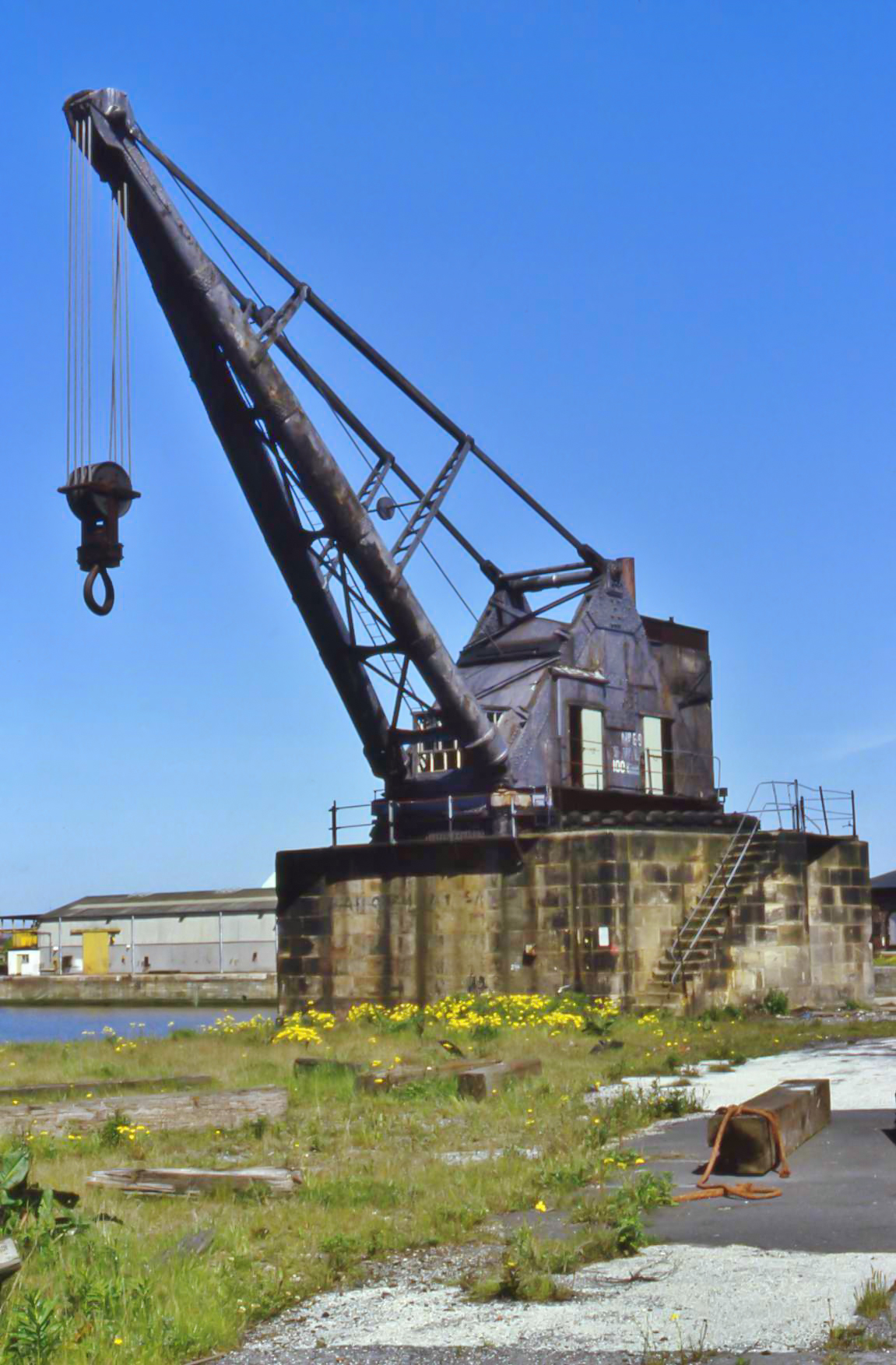 - Alexandra Dock, Kingston upon Hull, Sunday, 30 June, 1985. Travelling crane and pumphouse at the graving docks.