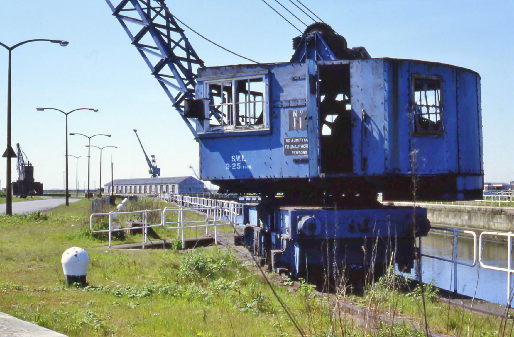 - Alexandra Dock, Kingston upon Hull, Sunday, 2 June, 1985. A 3.25-ton travelling crane alongside Graving Dock No.2.