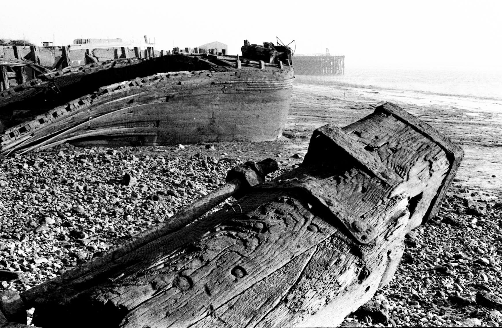 - Humber Estuary, Thursday, 23 April, 1987. Derelict piers on the Humber foreshore adjacent to the ABP (Associated British Ports) workshops.