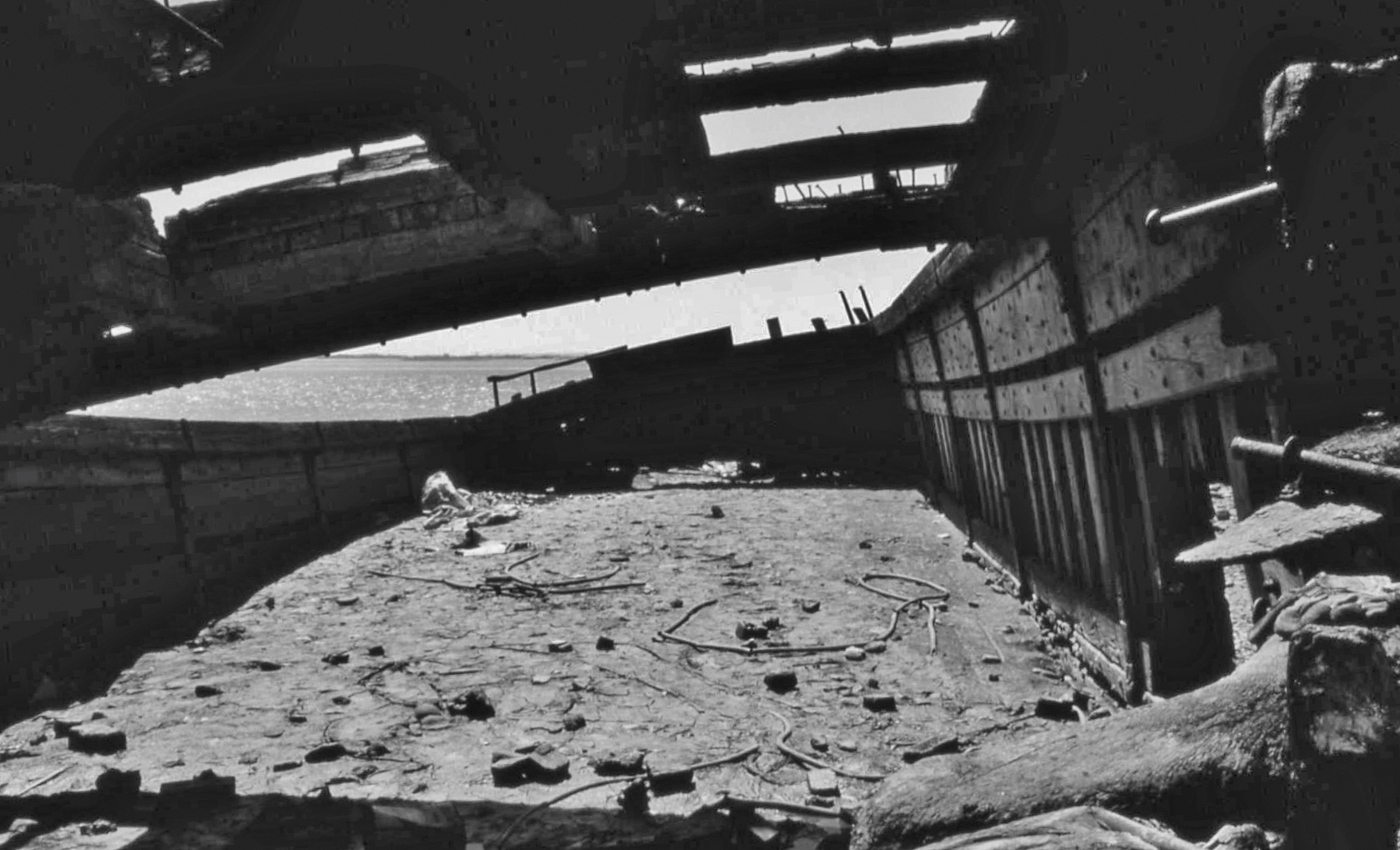 - Humber Estuary, Sunday, 2 June, 1985. Looking towards the Humber estuary through a derelict barge on the foreshore adjacent to the former Victoria Dock.
