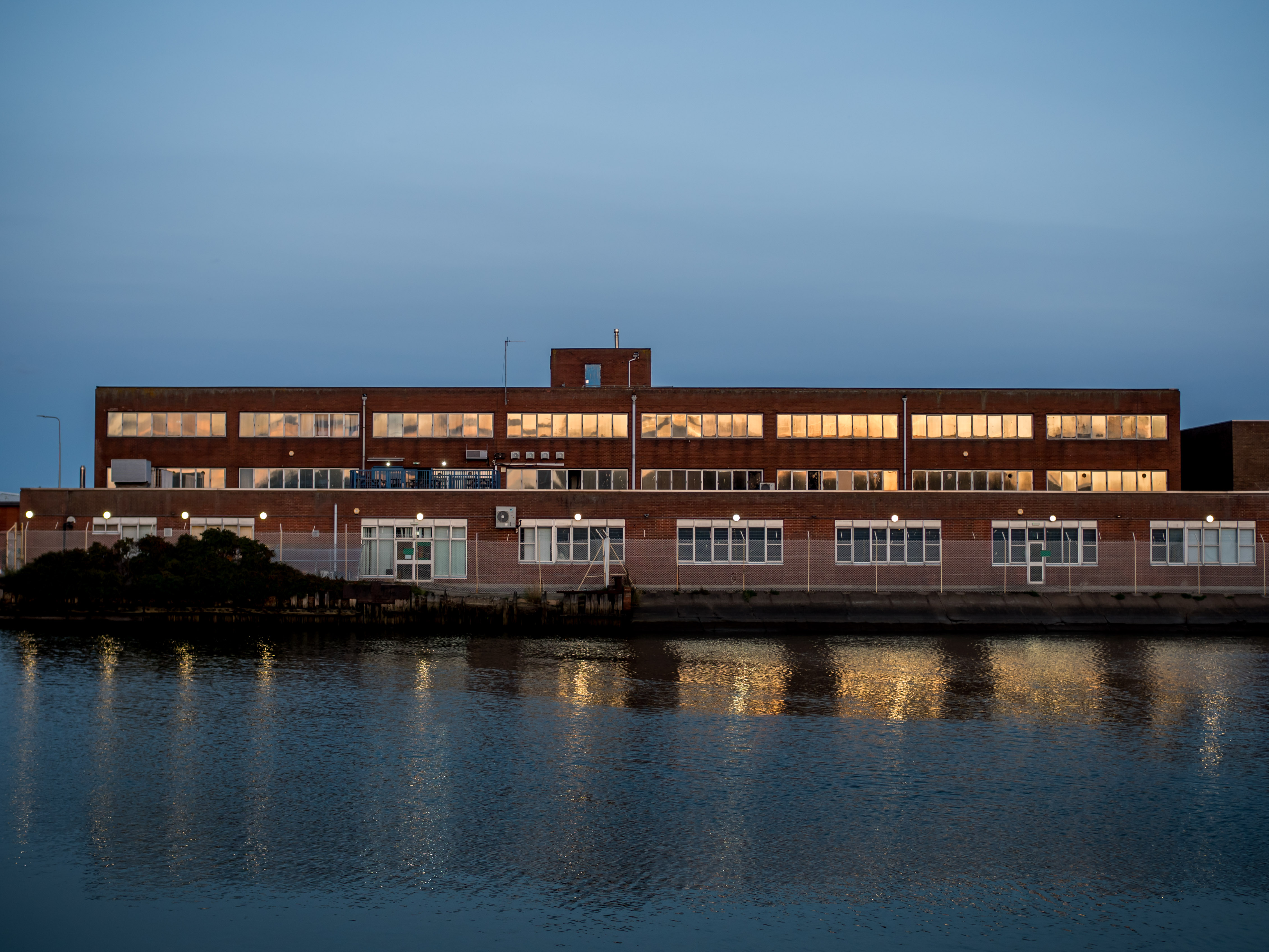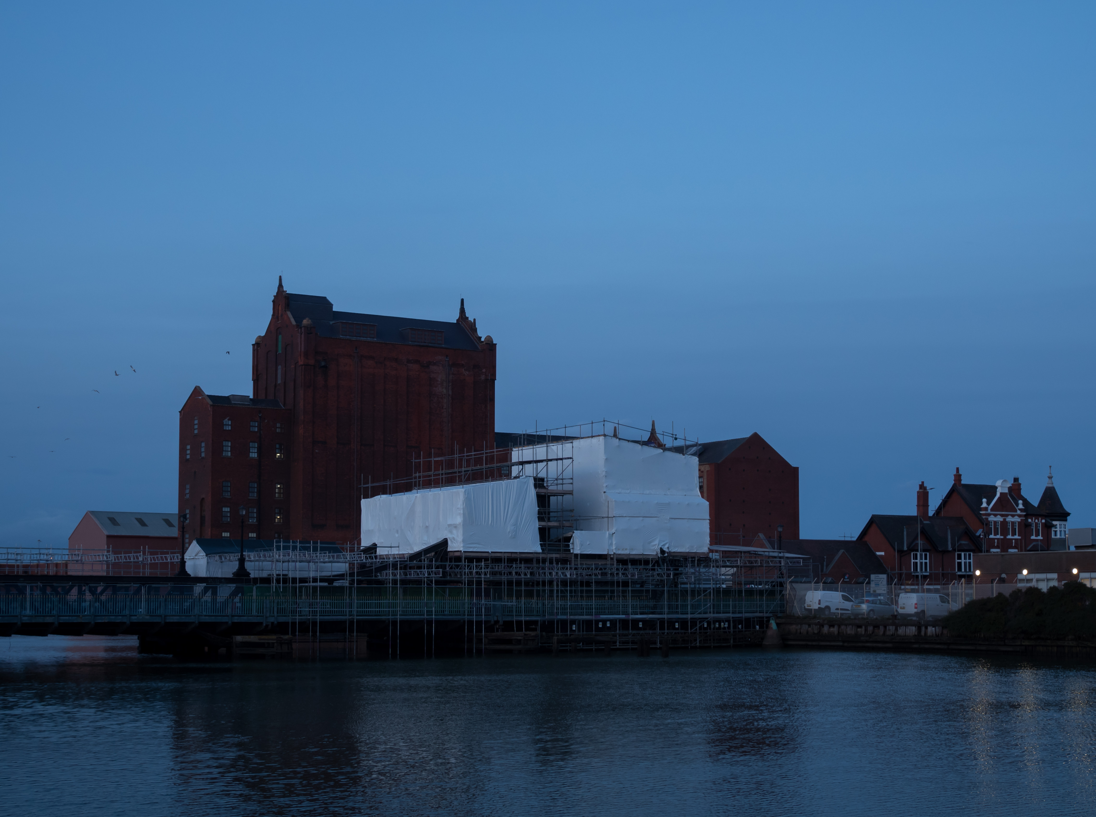 - Grimsby, the River Freshney at dusk and the renovation of Corporation Bridge