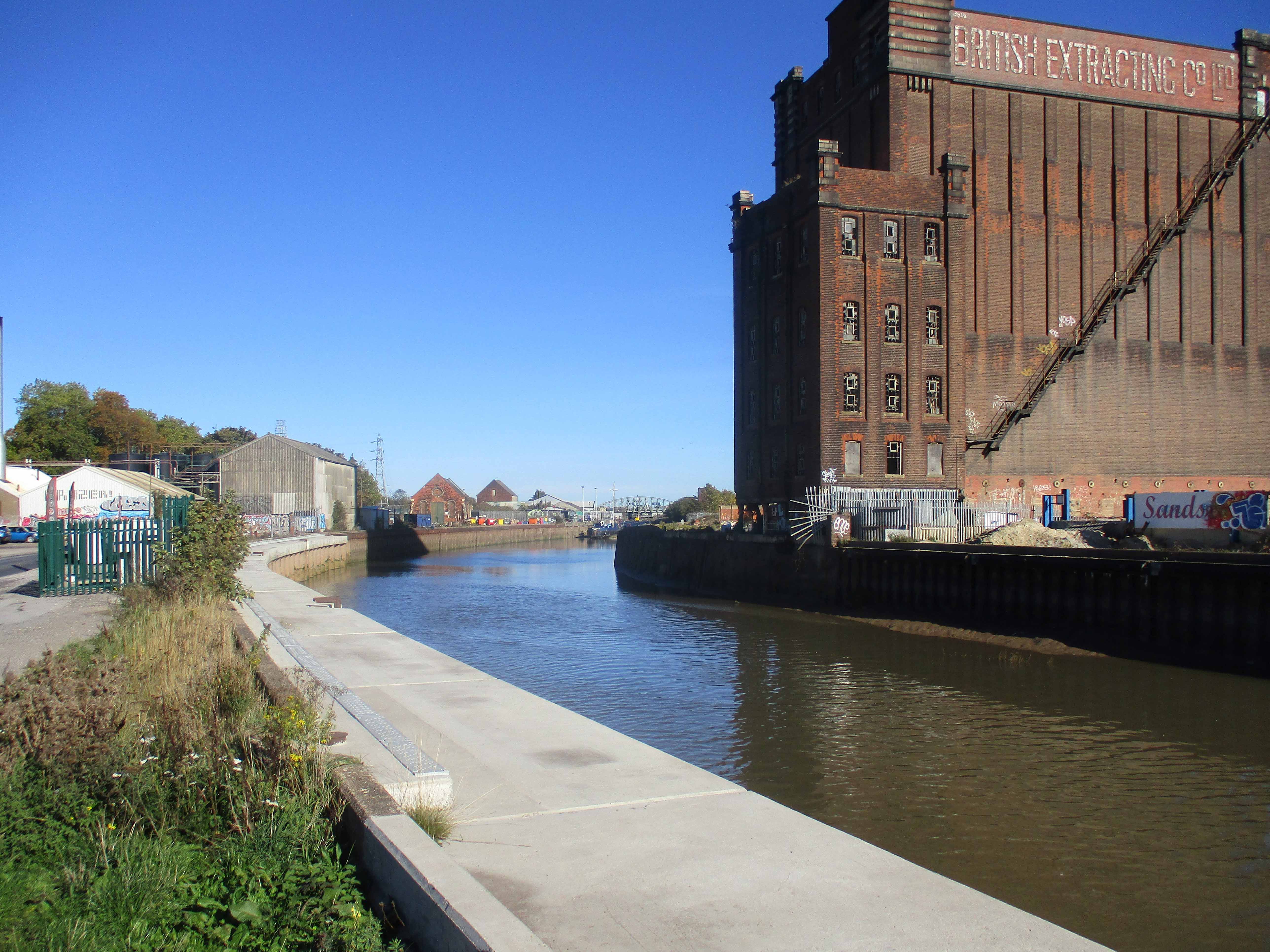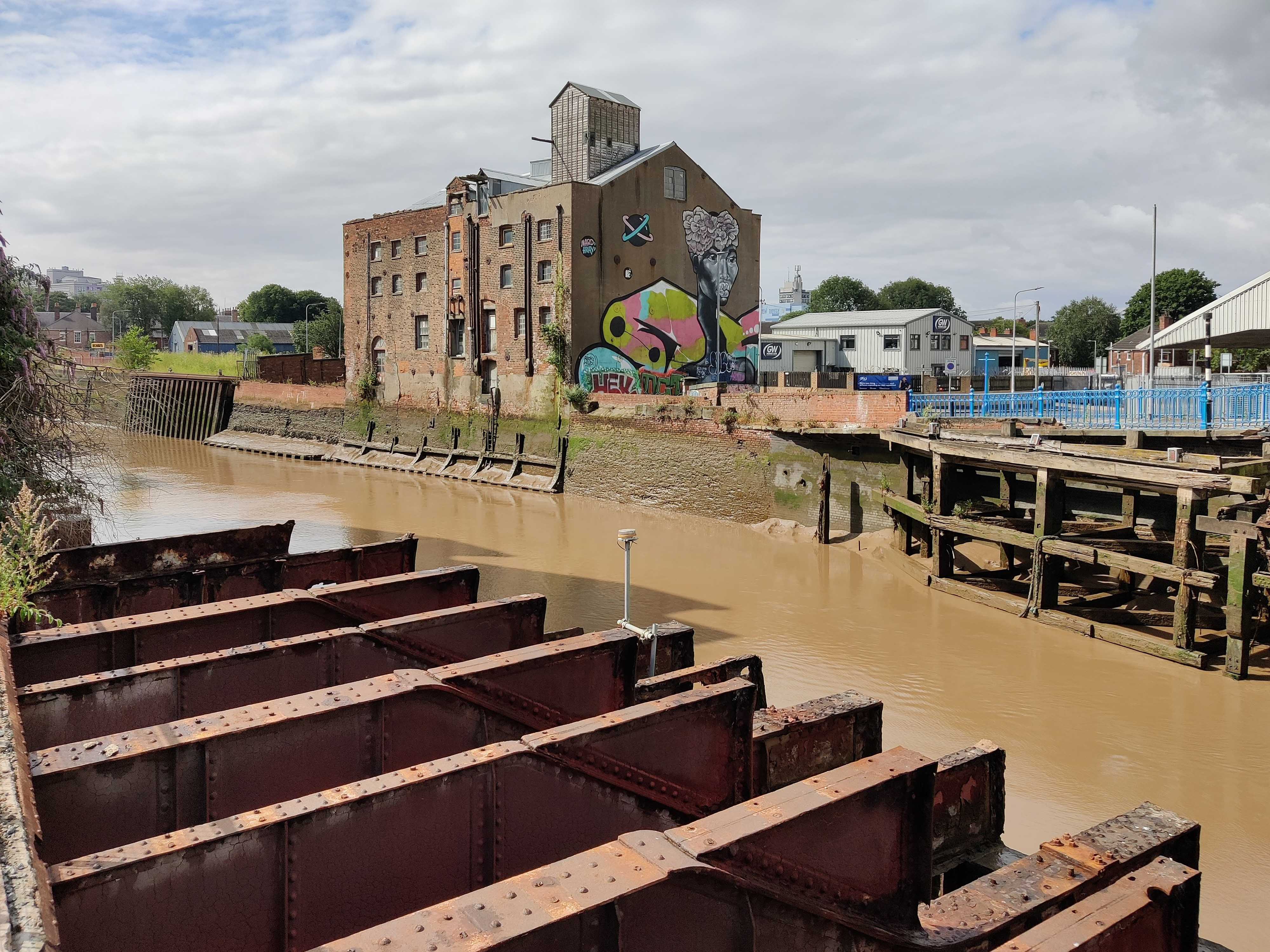 Finally on July 5th 2022 I caught the early morning stopping train to Hull to go and see for myself what was left. I walked across Drypool Bridge on a very sunny morning and found the walkway along the east side bank.