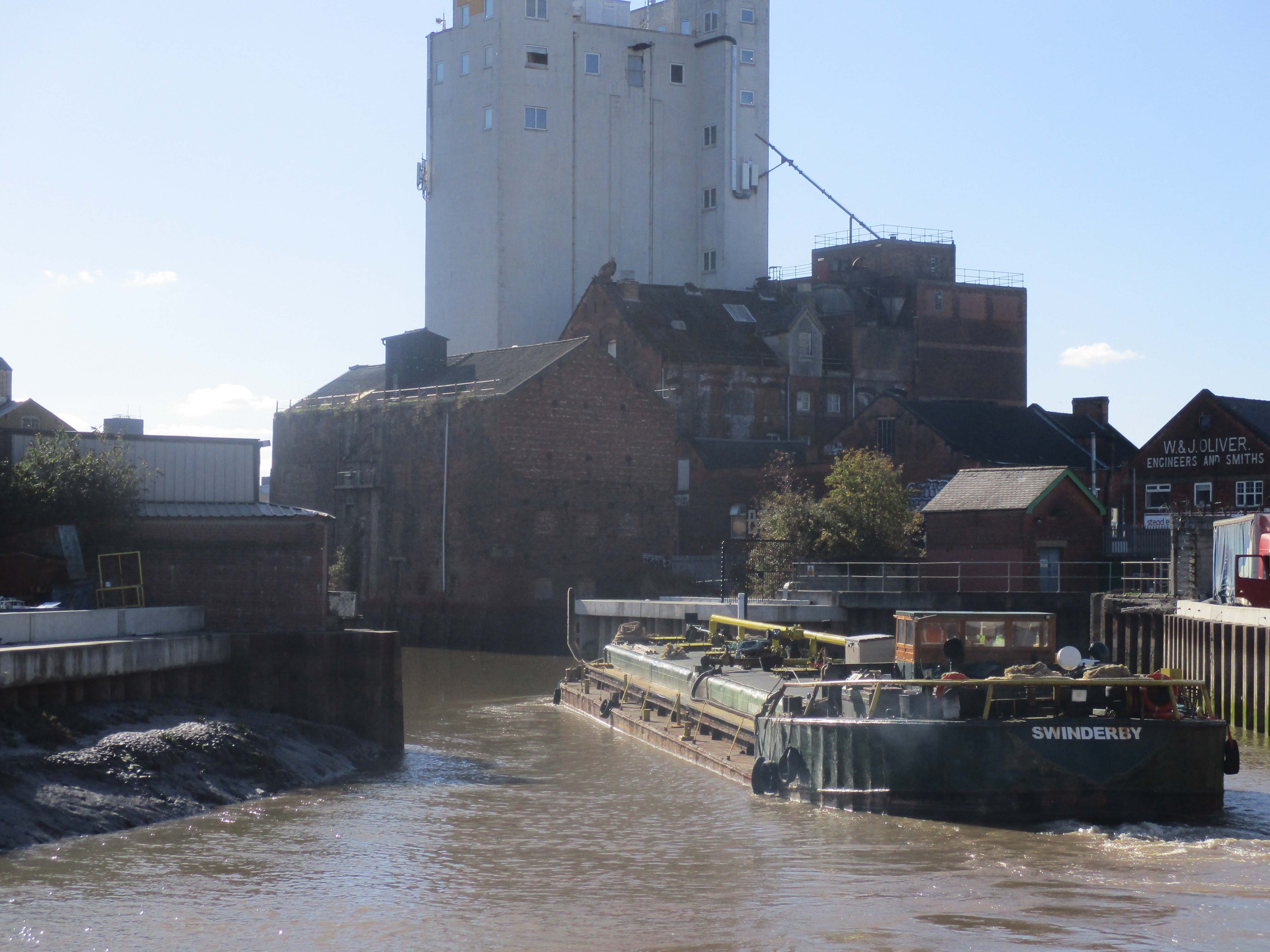 I then went to chat with Pete and I was able to see some of the entries in the Harbourmaster log of river traffic. I was intrigued to see that in August there had been a visit to Forge Wharf by Paragon carrying 150 tons of vegetable oils to IBLs storage depot. I didn’t know this still happened. Pete also told me that if there were problems getting through one of the bridges then the barge might moor at IBL at Forge Wharf in Eagles Bight or down at Lime Street Wharf.