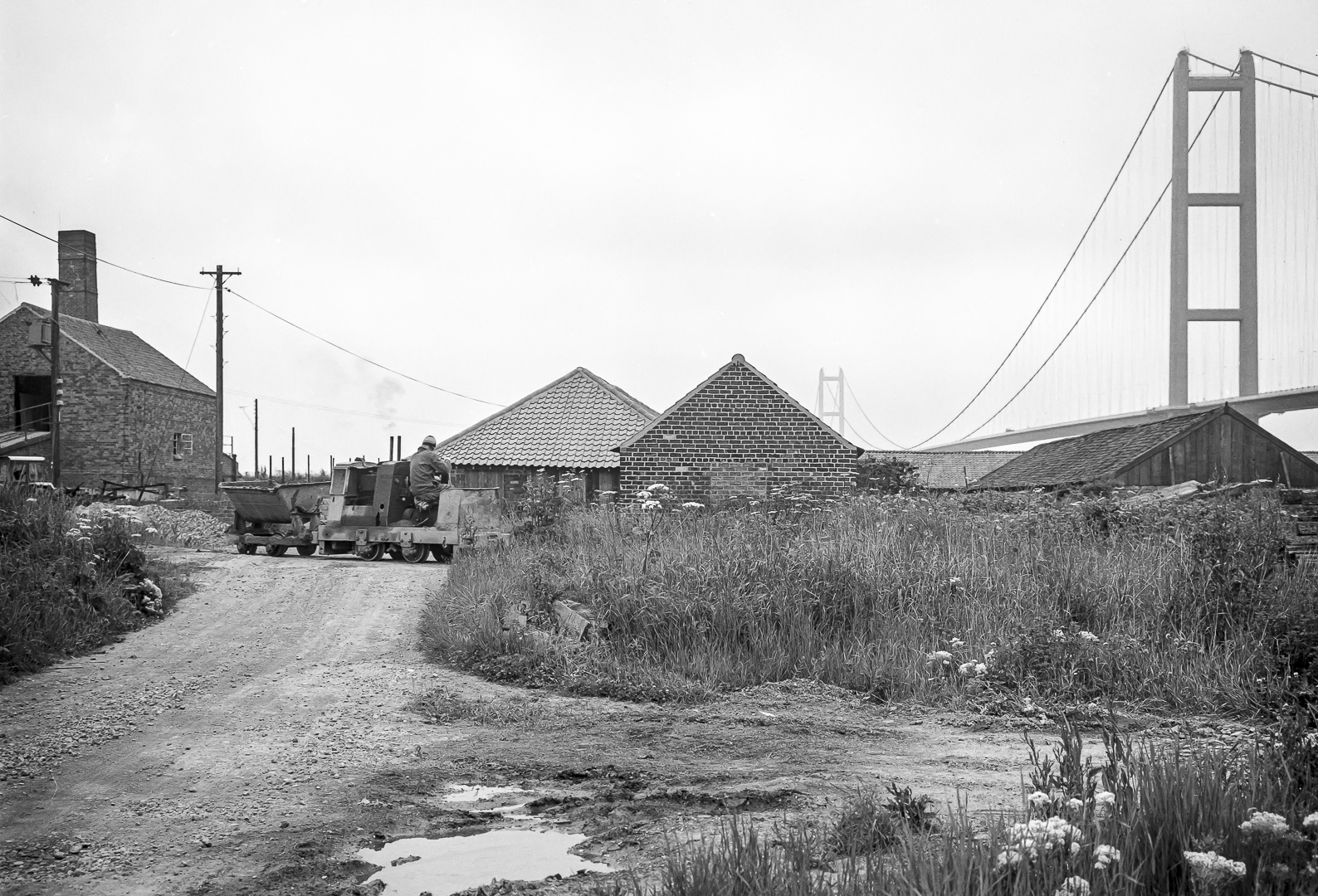 There are – and were – tile works east, under and west of the Humber Bridge between New Holland and Chowder Ness for centuries. The Far Ings nature reserve, west of Barton, was developed from the clay pits dug for 19th and 20th century tile production. The photographs in the gallery below were taken by Stuart Fountain of Nottingham between 1975 and 1985 showing the narrow gauge railway used for clay transportation to the kilns for tile production. The later photographs show the Humber Bridge in the background and during construction.