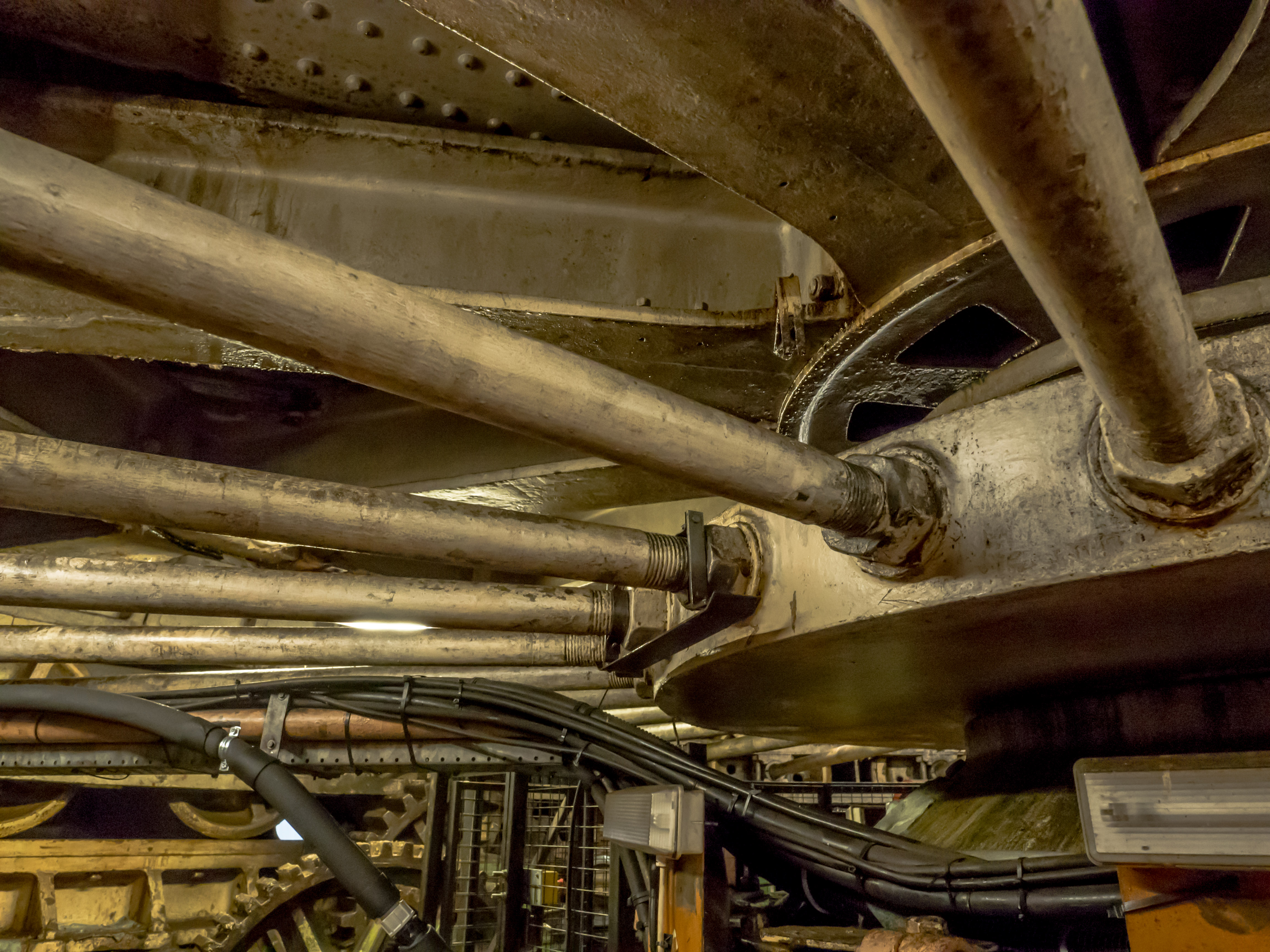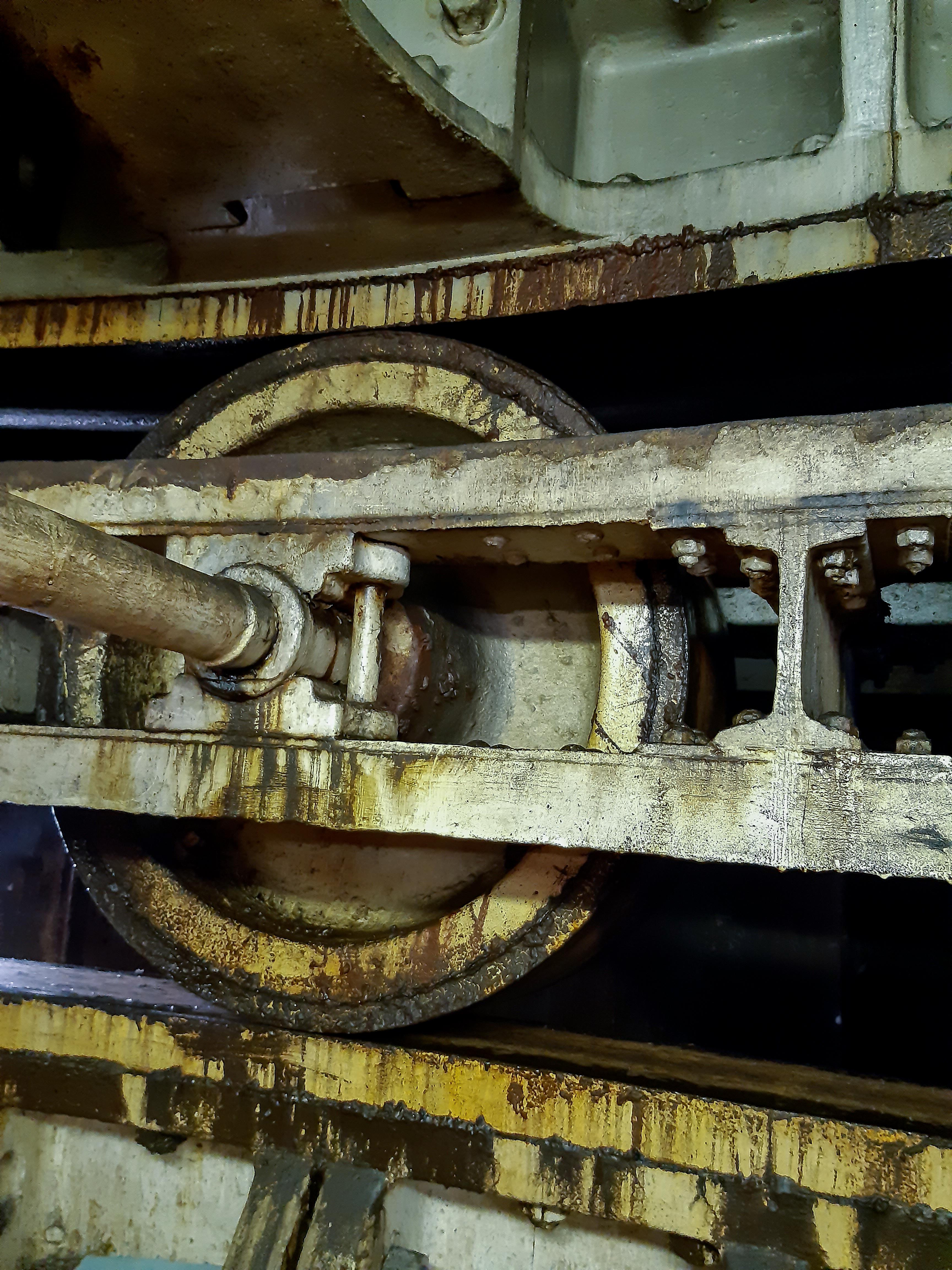 Photo 1 – In the foreground is one or the two original Turning Engines that was commissioned in 1868 as it’s still in operational use. Its associated open gear box which steps up the torque can be seen behind, and the Rollers which allow the swing span to rotate can be seen above.