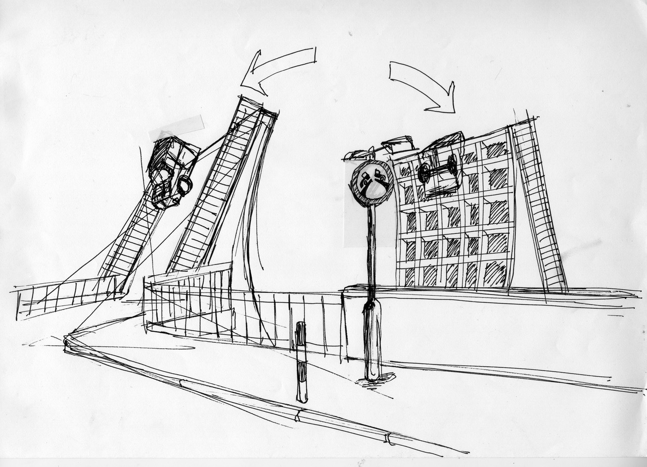 Watch the two films to discover Symposium. Thanks to Michael for the photographs in the gallery below the films which show the installation taking shape and a sketch of the initial idea considering Scott Street Bridge as a possible location.