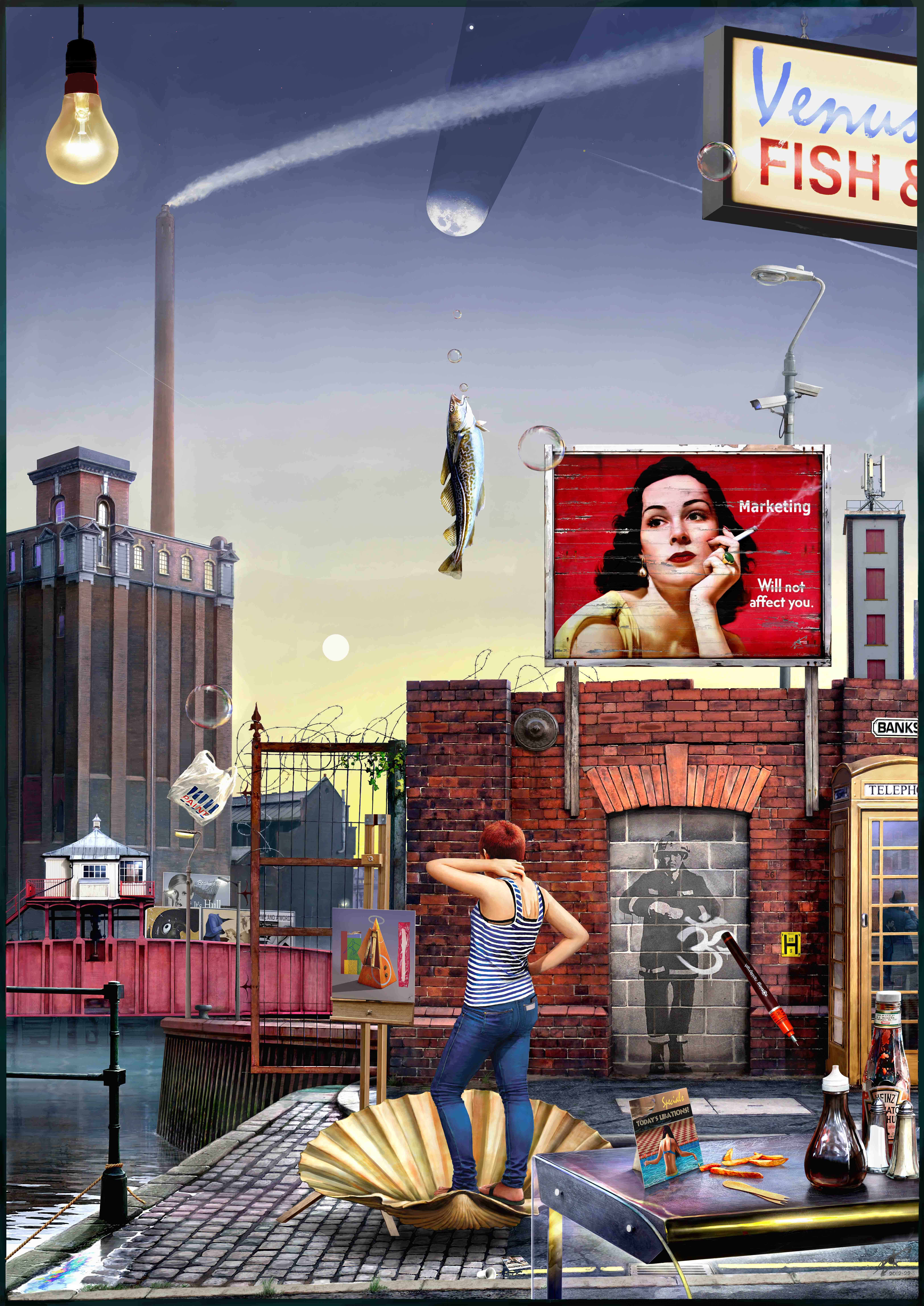 His formal training and his oil-painting approach remain evident in his recent work, though, over the last twenty years, he became an exponent and champion of digital painting. This modern media seems conducive to his detailed compositions and yet clearly still preserves his traditional painting style.