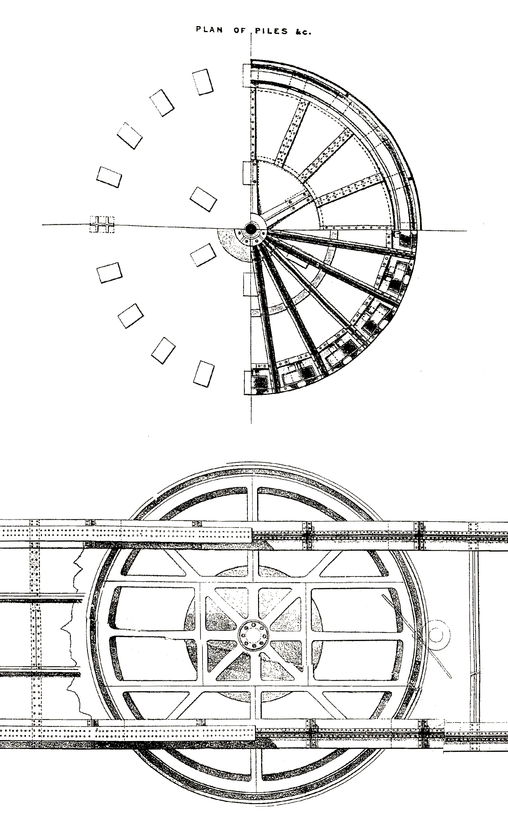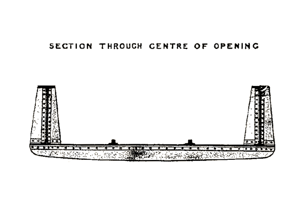 This was the original wrought iron railway swing bridge, erected by Thomas Cabry in 1853, to carry the Victoria, or East Dock, Railway over the River Hull from Sculcoates in the west to Wilmington in the east, destined for the eastern docks in Hull (Engineering, 1908).