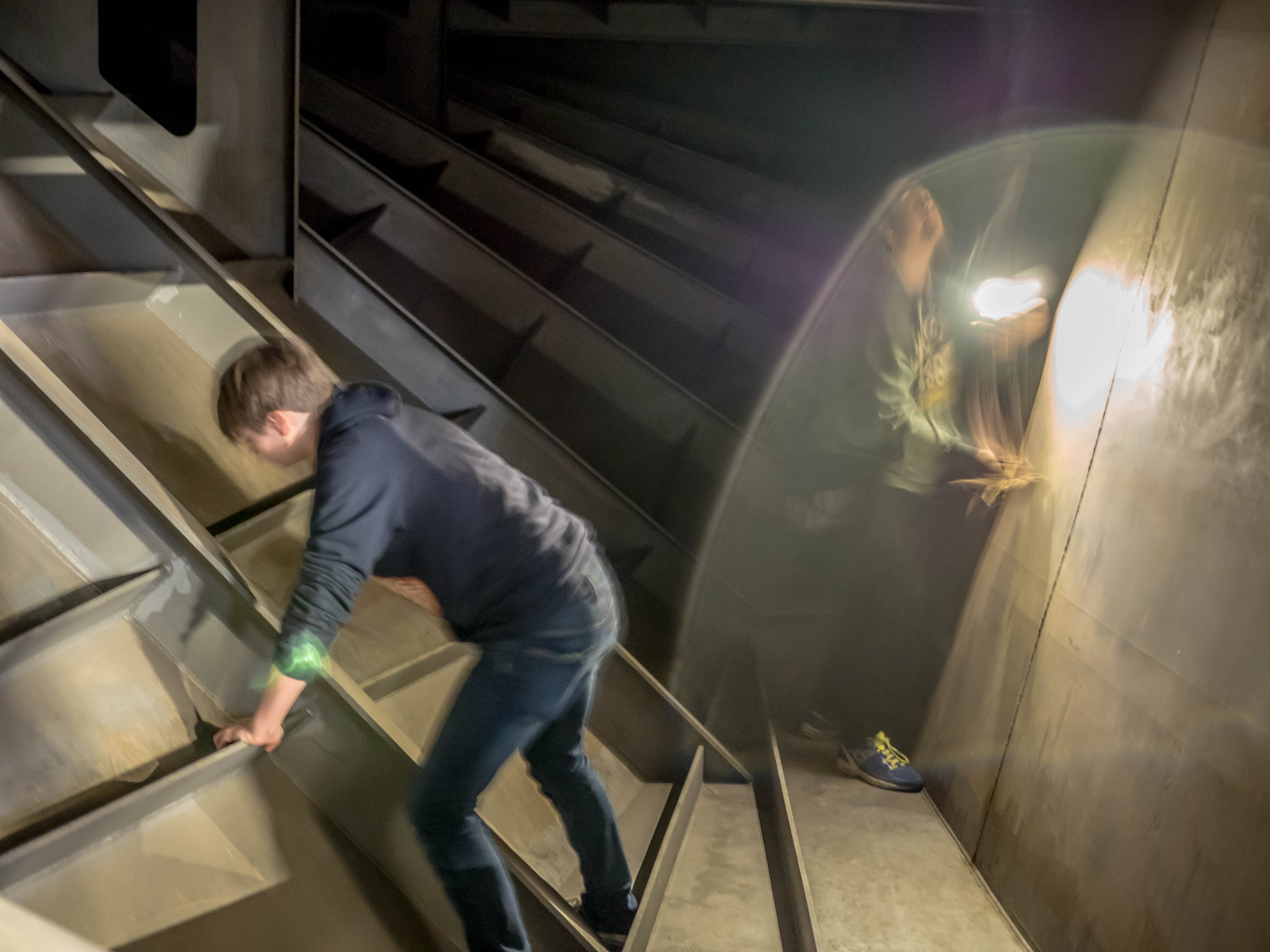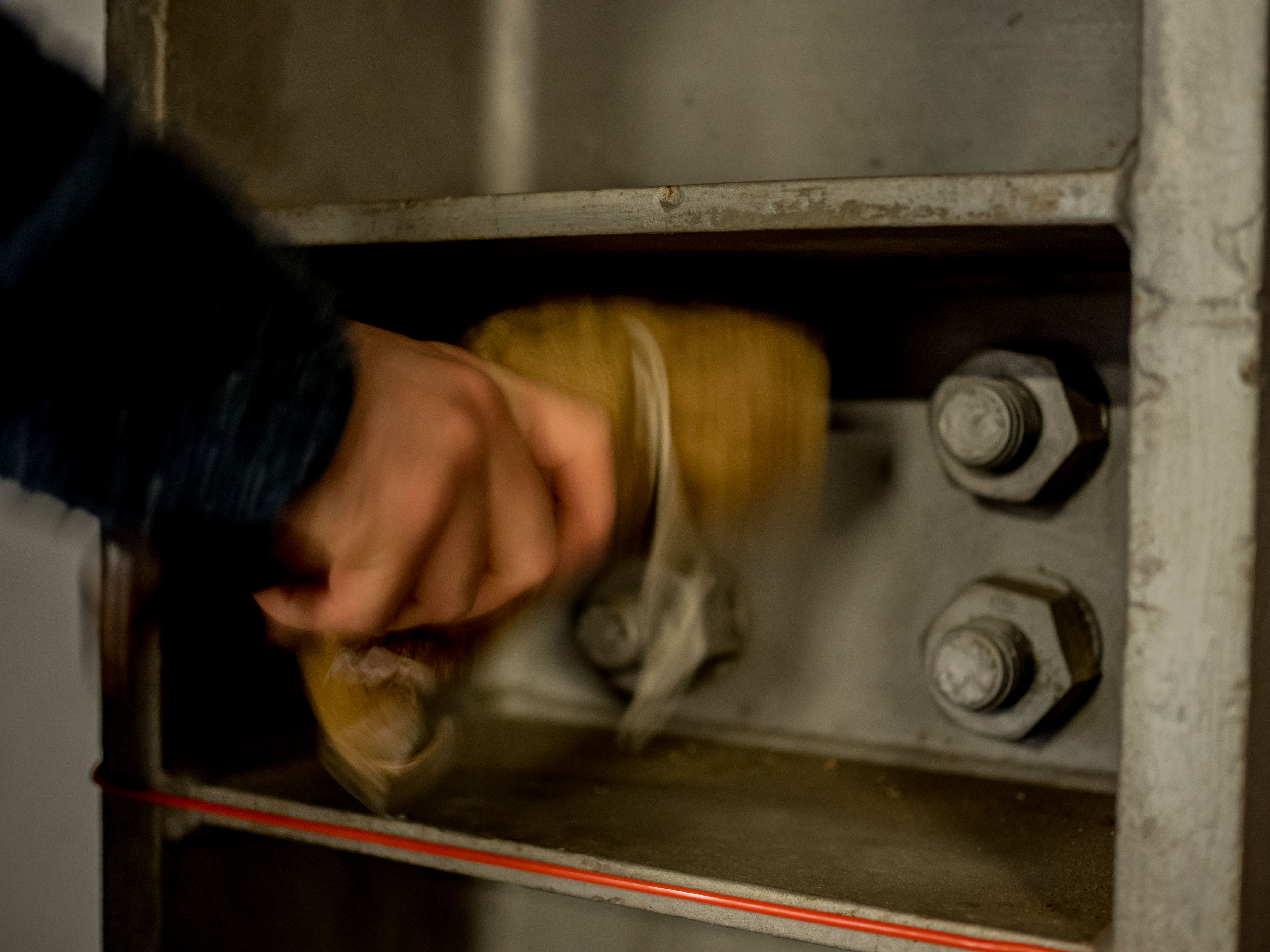 The project culminated in Madi Boyd’s installation inside Scale Lane Bridge which used the sounds created from recordings of the workshops and included a collection of interview fragments from Qualter Hall’s construction workers as well as hundreds of manipulated images taken during the construction process.