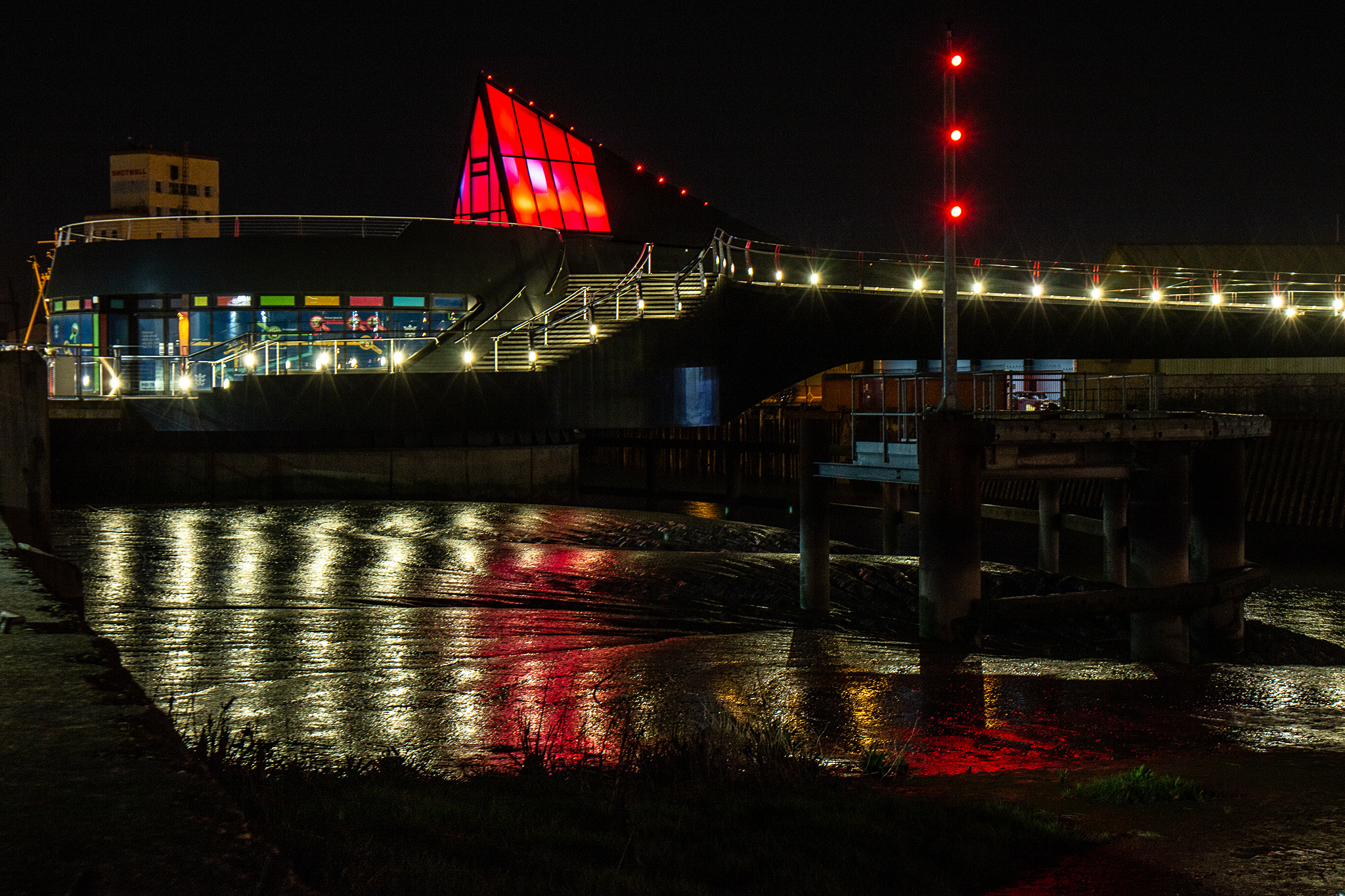 “The first footbridge of its kind in the world to allow people to ride on it while it opens, the Scale Lane footbridge was officially opened by former Lord Mayor of Kingston upon Hull and Admiral of the Humber, Councillors Nadine Fudge and Boulton from the Homes and Communities Agency on Friday 28 June 2013.
