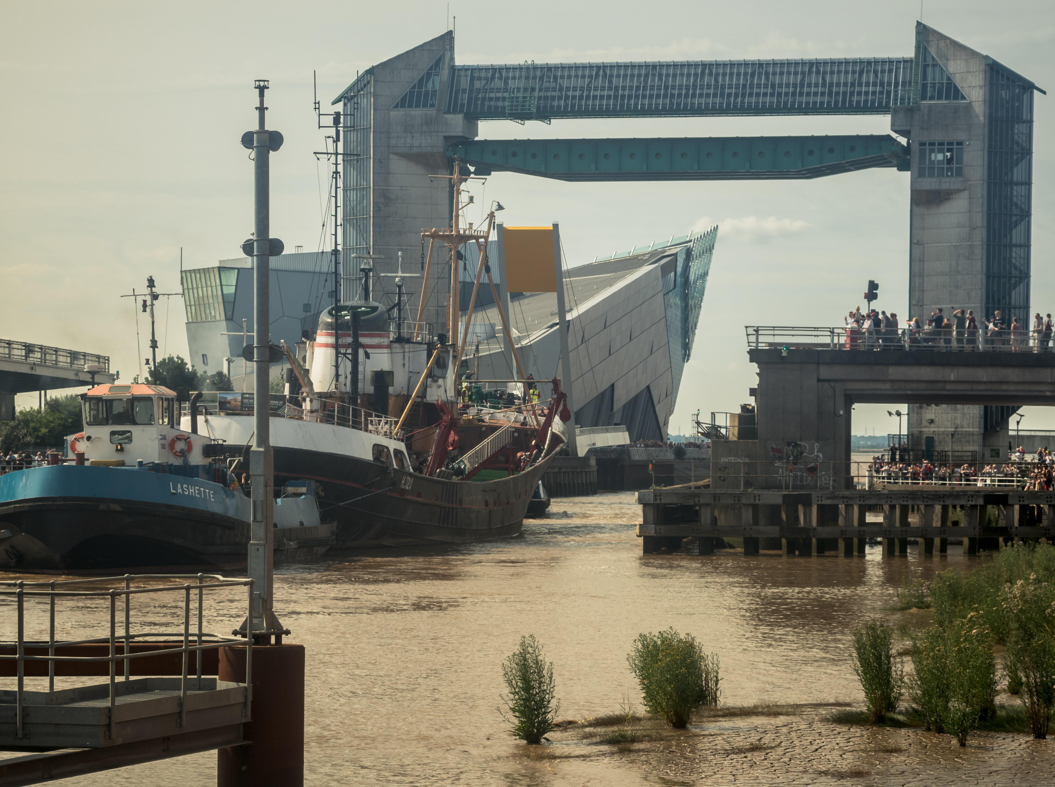 Dean’s Marine Lashette guides the Arctic Corsair through Myton Bridge in August 2019
