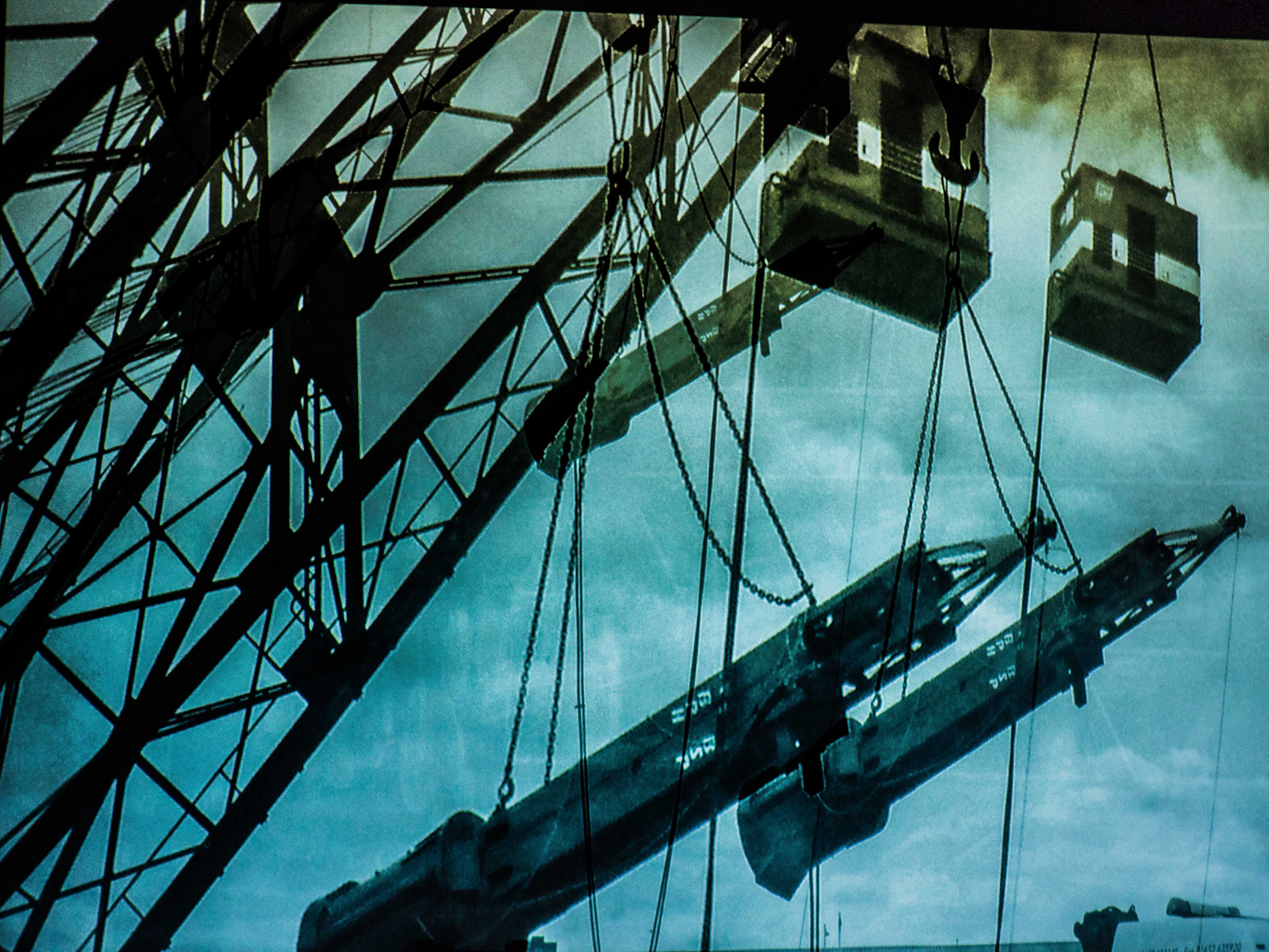 The installation inside the bridge hub, used sounds gathered in open Gamelan workshops, which took place in and around the bridge, as well as interviews and sounds from Qualter Hall, the engineers who built the bridge. These combined with films created through a collage of hundreds of manipulated images taken of the bridge under construction. The imagery was then abstracted and fragmented into a visual poem that conveyed a sense of the complexity of the bridge and revealed the hidden mechanics of the opening mechanism. It was dark, ethereal and atmospheric, as you can see in the gallery and in the second half of the documentary film below.