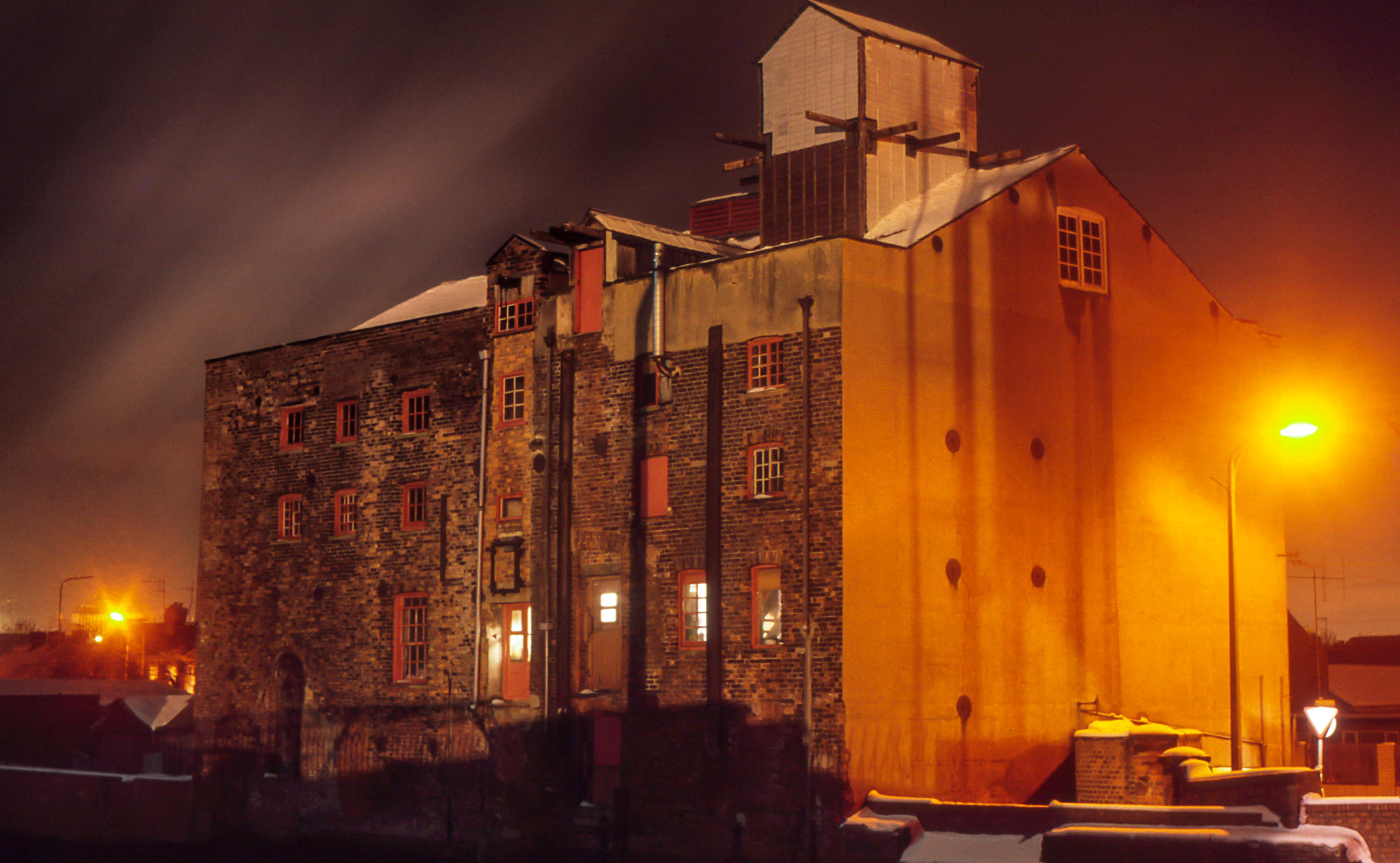 Grosvenor Mill at Night in the Snow