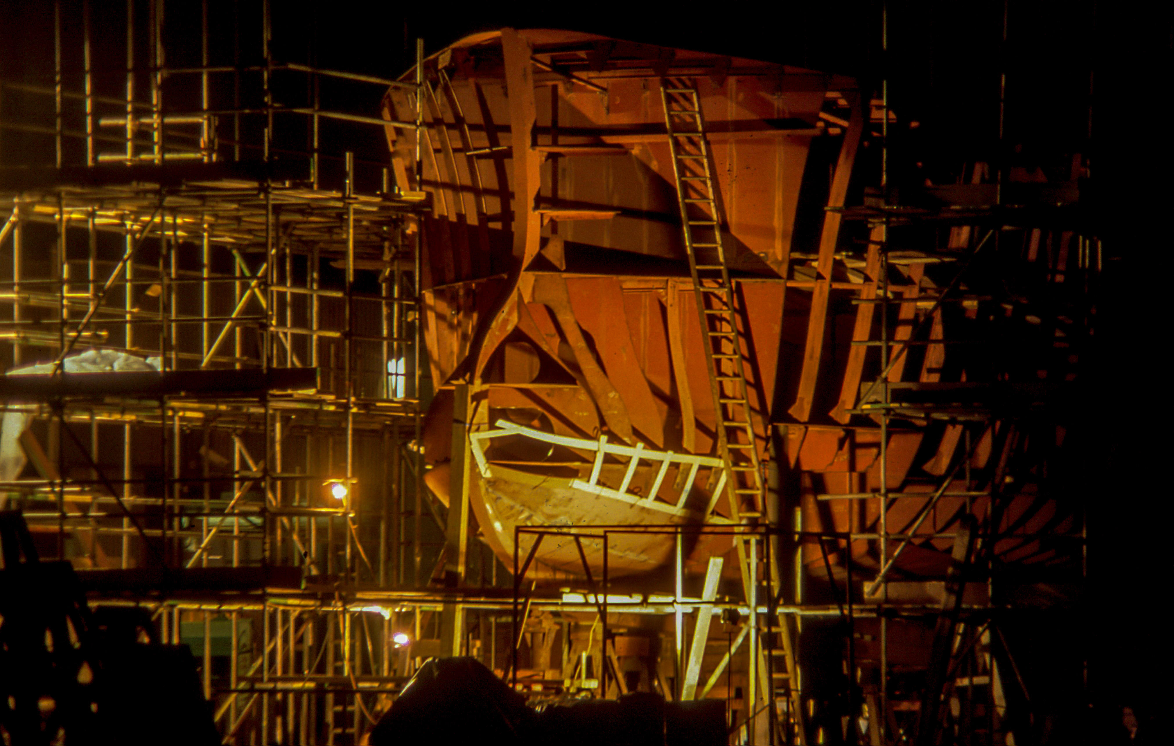 The shipyard was busy, often late into the night, alive with the chorus of hammers and the scream of grinders.