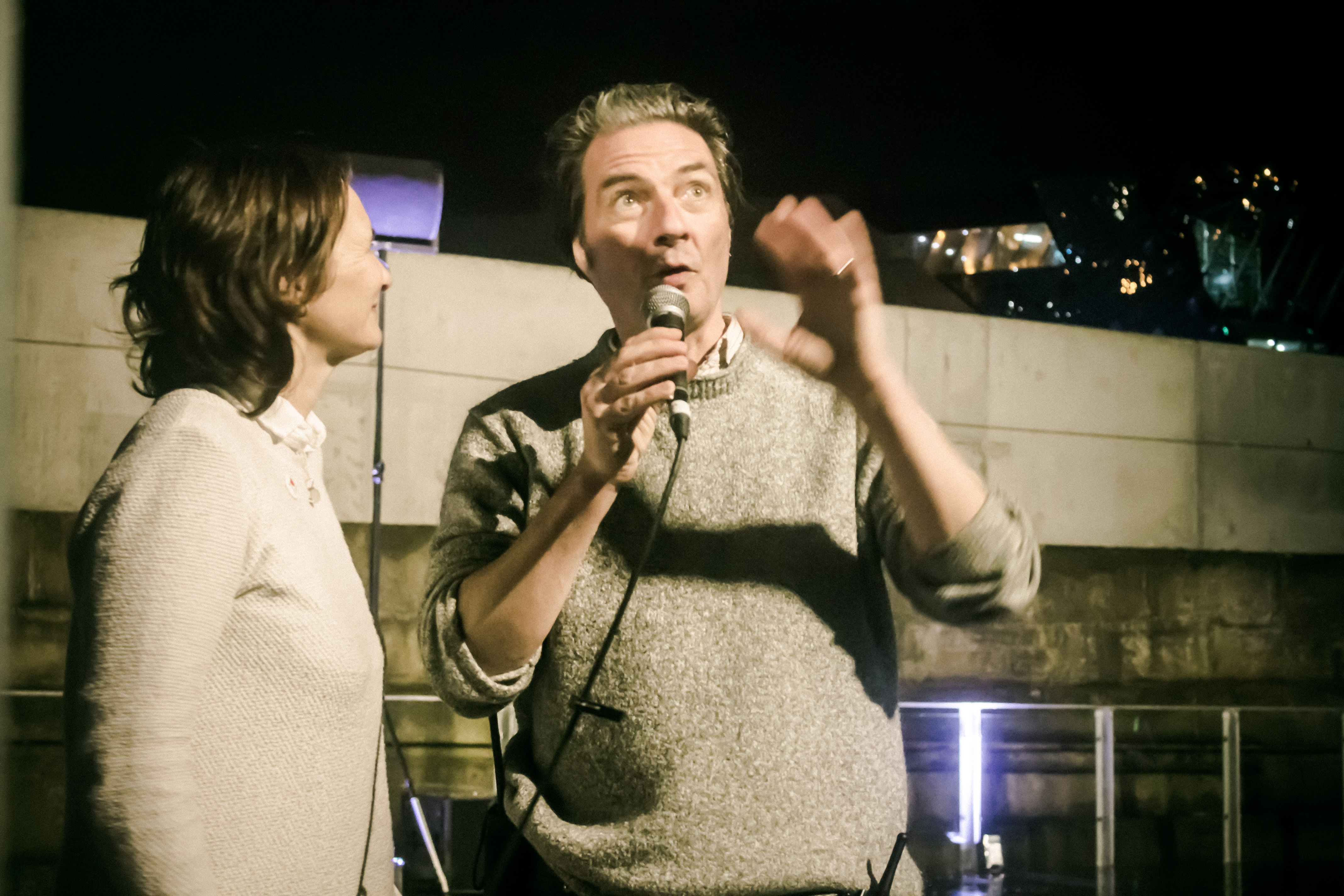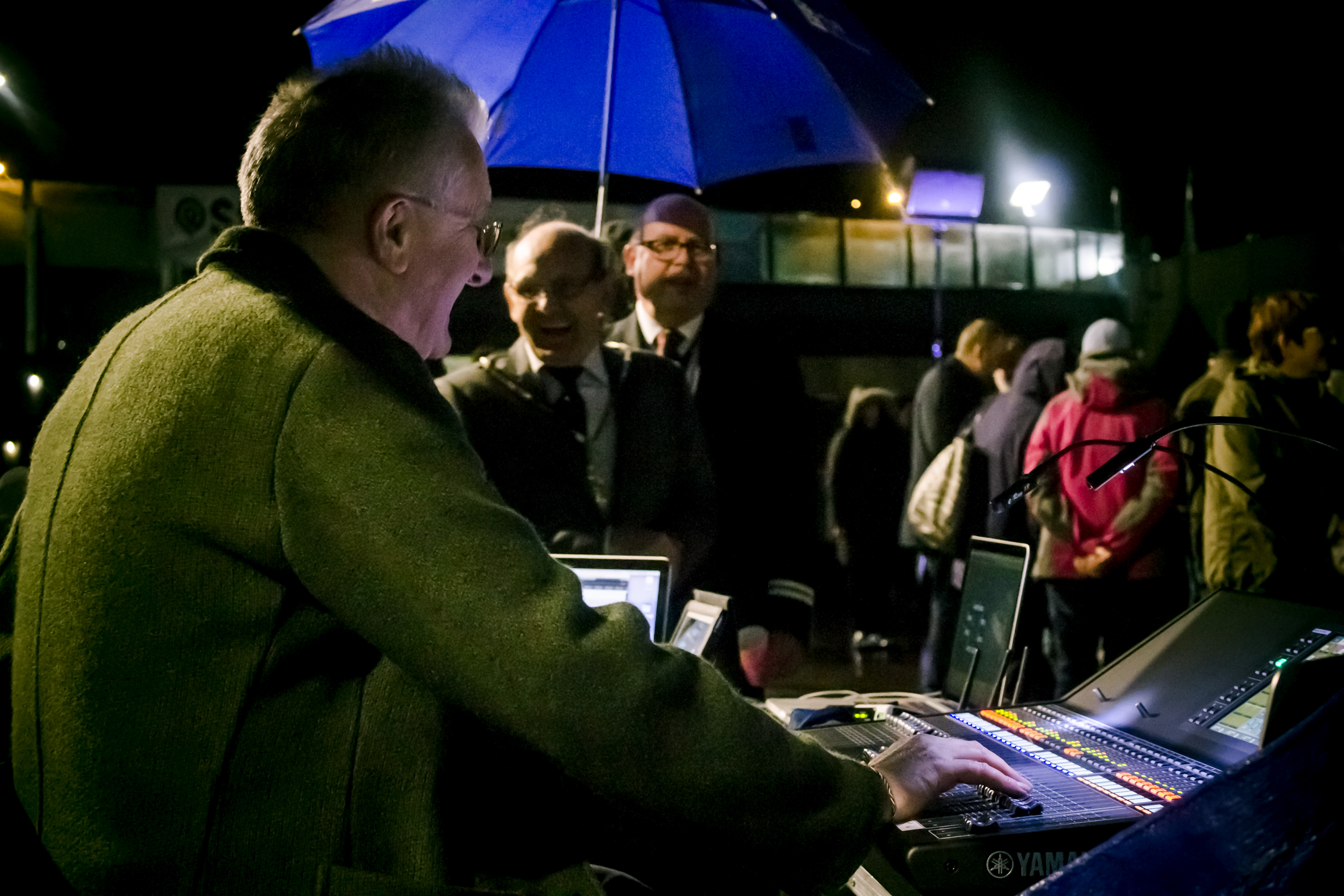 Operationally the logistics required to make Open Bridges happen presented many challenges. Every challenge was overcome and when the city had separated and reunited, and the vessels sailed out into the darkness of the Humber, the world premiere of John Stead’s new musique concrète work took place before a capacity audience at Hull’s Stage at the Dock. Thanks to Cathy Allenby for capturing our opening welcome to the performance: