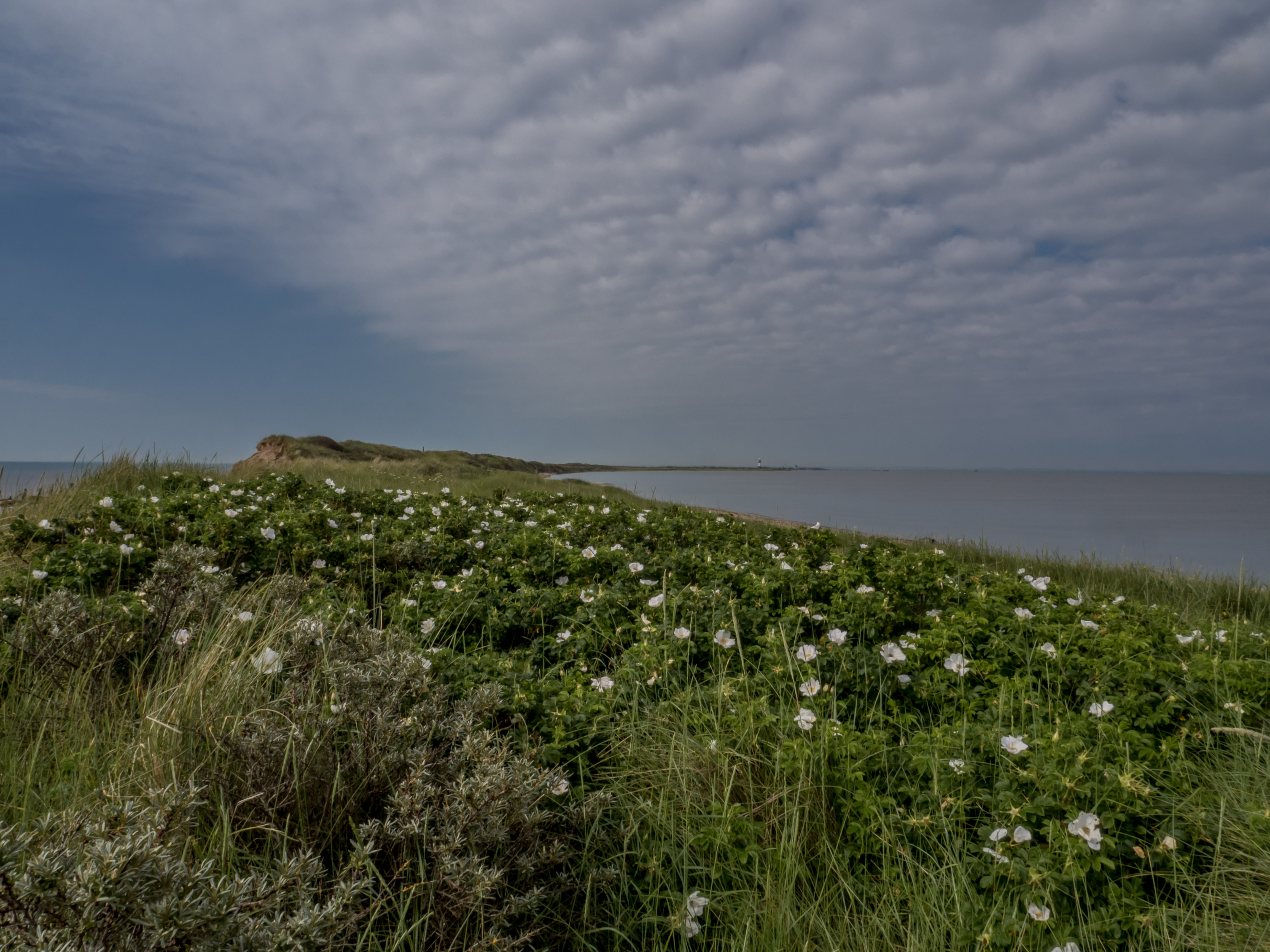 It was a glorious day and at 8 am the coast was clear as we found ourselves alone with the rabbits and the linnets and larks. The path wended its way south bordered by wild roses and orchids, sea holly, sea buckthorn and marram grass as we reached the lighthouses, RNLI stations and jetty. The same path took us back, and into the cool sea breeze as the lure of Lou’s home-made pasties spurred us on, and then up the coast road for afternoon tea and ice-cream at Skipsea.