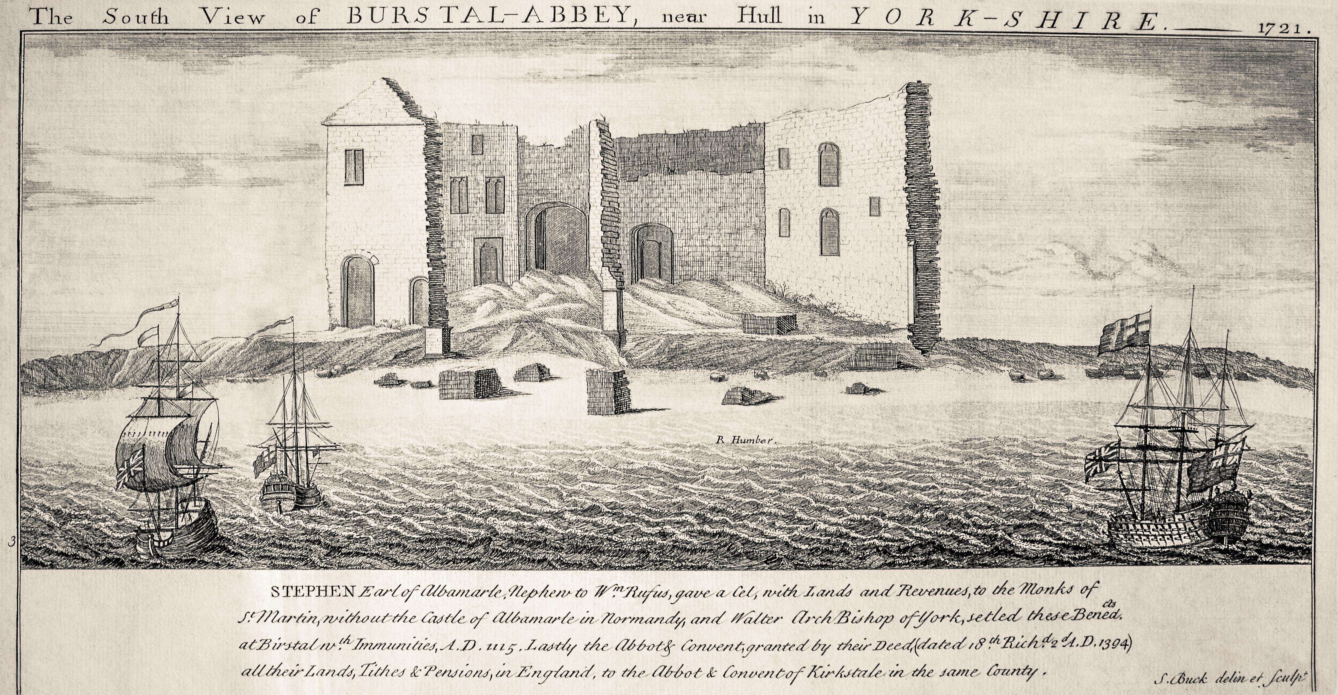On the coast south of Skeffling, Burstall Abbey (1219 – 1536) falls into the Humber in 1721.