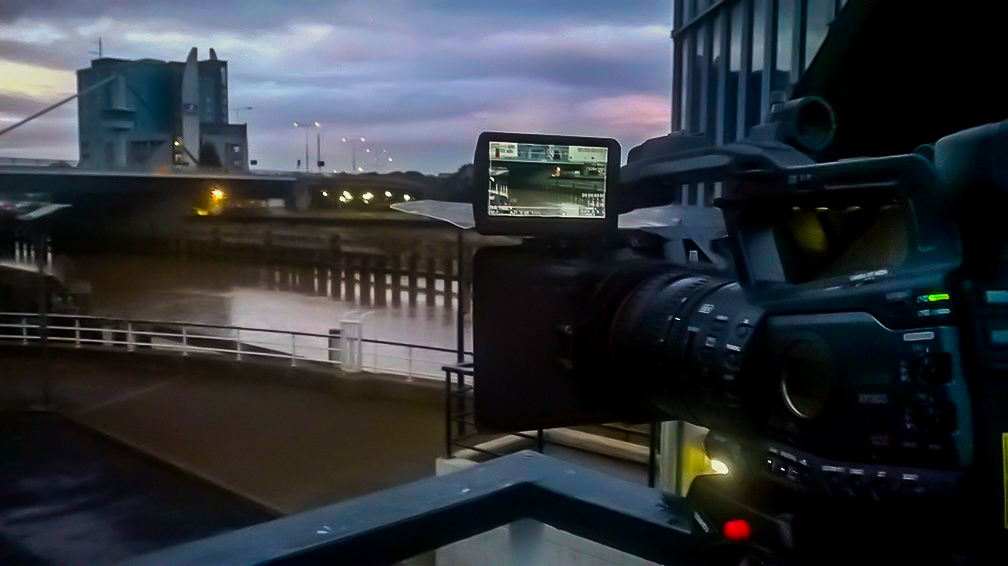 Humber Film’s Darren Edwards filming Myton and Alex Davies on the MV Syntan under Stoneferry for Open Bridges 22.09.2017